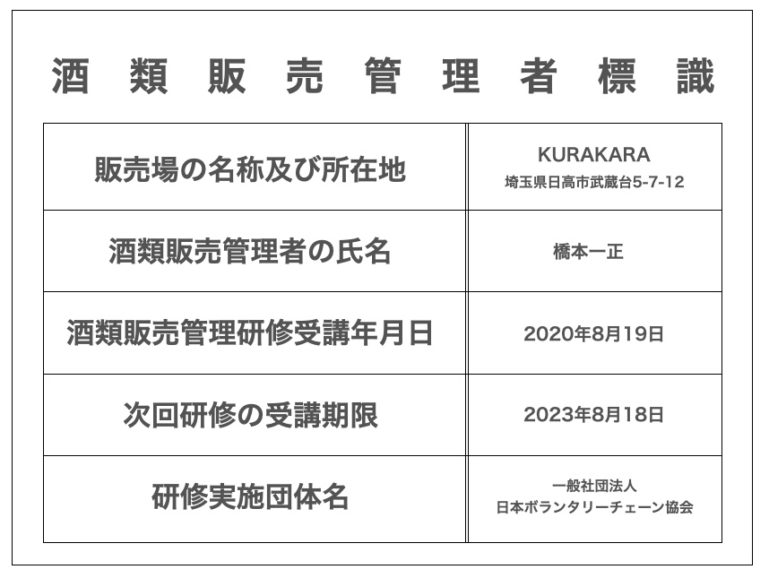 - 酒類販売管理者標識